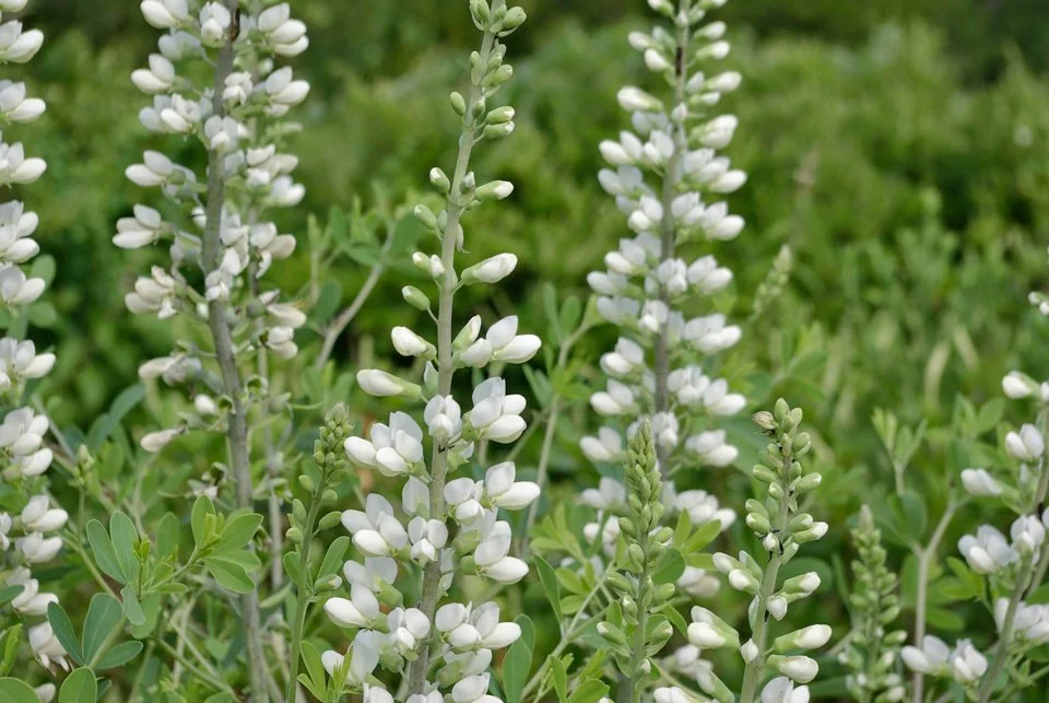 A tall, drought-tolerant perennial with white blooms on tall spires. Blooms June – August. Pollinators love these flowers.